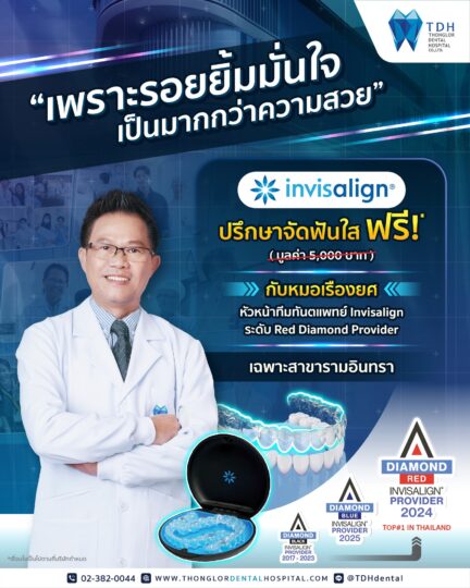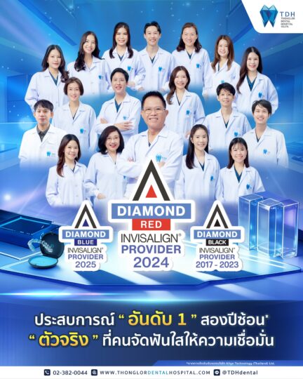 TDH Dental ได้รับรางวัล Invisalign Red Diamond Provider อันดับ 1 ด้านการจัดฟันใสในประเทศไทย ที่มีเคสจัดฟันใสมากกว่า 1,000 เคส/ปี ประสบการณ์มากกว่า 6,700 เคส ครอบคลุมตั้งแต่เคสทั่วไปจนถึงเคสซับซ้อนระดับสูง มั่นใจในผลลัพธ์ ด้วยเทคโนโลยีทันสมัยและมาตรฐานระดับสากล