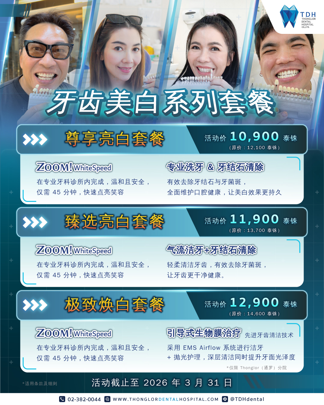 我们牙医会要求您避免吃会弄脏牙齿的食物和饮料,例如咖啡和红酒,还有戒烟也会非常有帮助。主要是每天刷牙两次并使用牙线一次以去除牙菌斑,保持您美丽的笑容。