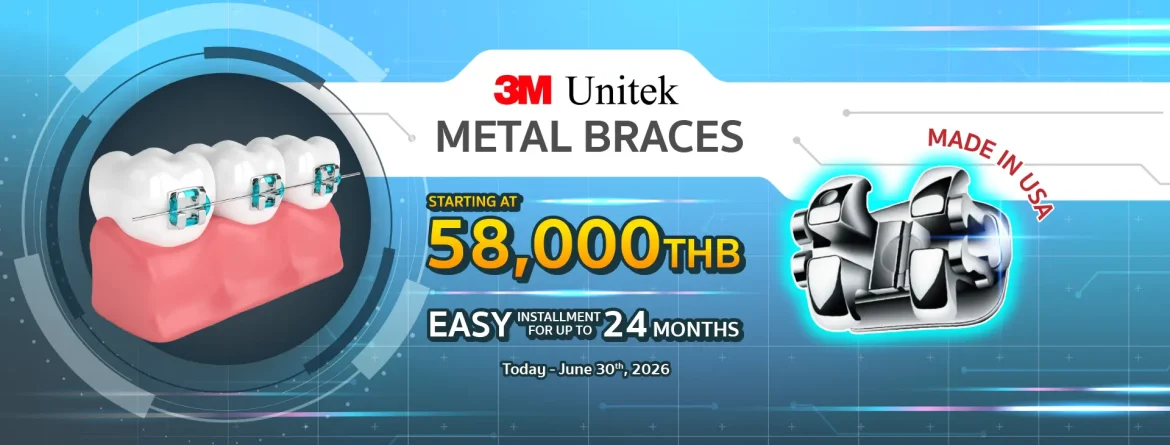 Metal braces are widely popular. Currently, the materials used have been developed to be smaller, more efficient, and more comfortable. The advantage is that they can be used for all types of braces at a cheaper price than other types, including a variety of colors of rubber bands to choose from.