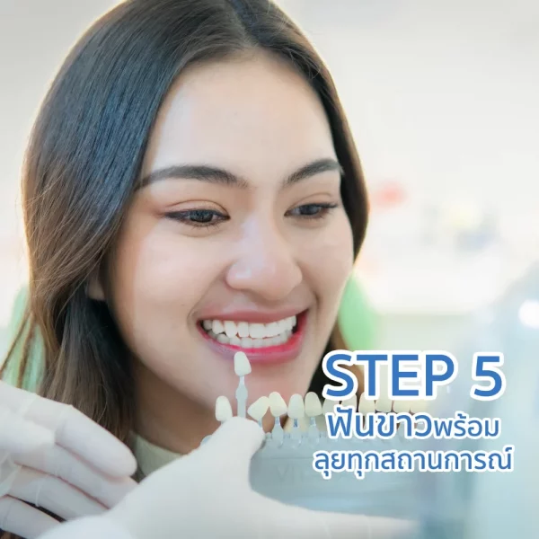ขั้นตอนที่ 5 เสร็จสิ้นกระบวนการฟอกสีฟัน เพียงเท่านี้ฟันของคุณก็ขาวอย่างเป็นธรรมชาติ พร้อมออกลุยทุกสถานการณ์