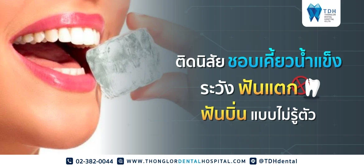 เวลาที่เราได้กินอาหารอร่อยๆ โดยเฉพาะอาหารที่มีรสจัดจ้านอย่าง เช่น ส้มตำ ยำ ผัดเผ็ด การเคี้ยวน้ำแข็งเพื่อดับความเผ็ดร้อนของอาหารลง เป็นสิ่งที่เกิดขึ้นได้เป็นธรรมดา แต่เคยสังเกตตัวเองบ้างหรือไม่ว่าหลังจากที่เราเคี้ยวน้ำแข็งเข้าไปแล้ว สุขภาพของฟันเรายังปกติเหมือนเดิมอยู่หรือเปล่า เพราะว่าการเคี้ยวน้ำแข็งถึงแม้ว่าจะเป็นเพียงแค่ก้อนเล็ก ๆ ก็สามารถที่จะทำให้ฟันแตก หรือบิ่นได้ ถ้าหากไม่รีบทำการรักษา และปล่อยไปเรื่อย ๆ ก็สามารถกลายเป็นปัญหาเรื้อรังจนถึงขั้นต้องรักษารากฟันกันได้เลย ดังนั้นเราควรตรวจสุขภาพฟันอย่างเป็นประจำทุก 6 เดือน แต่ถ้าใครเริ่มมีปัญหาเกี่ยวกับฟันแล้ว ต้องการคำแนะนำและการรักษาสามารถปรึกษาทันตแพทย์ผู้มากประสบการณ์จาก TDH Dental ได้ตลอดทุกวัน เพื่อรอยยิ้มสวย ๆ อยู่กับเราไปอีกนาน