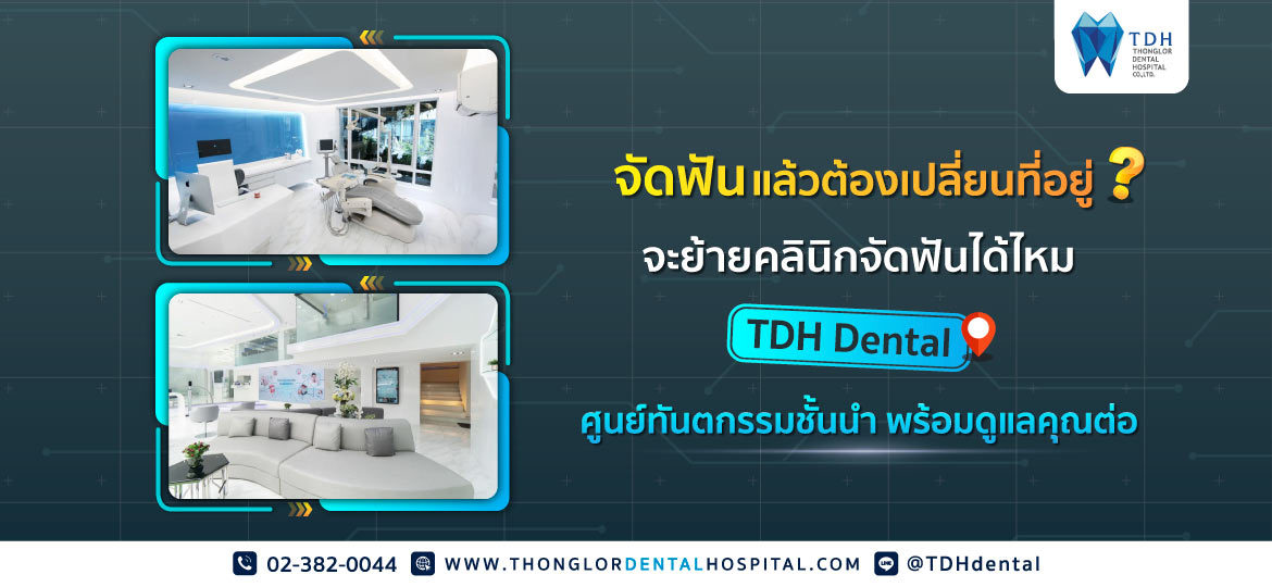 สำหรับใครที่จำเป็นต้องย้ายคลินิกจัดฟัน ไม่ว่าจะเพราะจัดฟันไม่เสร็จสักที จัดแล้วไม่สวย หรือต้องย้ายที่อยู่ TDH Dental พร้อมดูแลคุณต่อ โดยคลินิกทันตกรรม TDH มี 4 สาขา ในกรุงเทพฯ และปริมณฑล ได้แก่ สาขาทองหล่อ สาขาปุณณวิถี สาขาราชพฤกษ์ สาขาไอคอนสยาม ซึ่งทุกสาขาของเรามีทันตแพทย์เฉพาะทางจัดฟันที่พร้อมดูแลเคสจัดฟันทุกรูปแบบ ตั้งแต่การจัดฟันแบบโลหะ ไปจนถึงการจัดฟันแบบใส