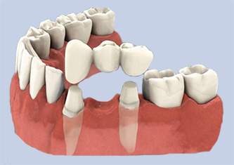 สะพานฟันแบบติดแน่น ประกอบด้วยฟันเทียม 1 ซี่หรือมากกว่า ที่รองรับด้วยฟันธรรมชาติที่อยู่ติดกัน โดยการเจียรฟันธรรมชาติออกให้เป็นฐานรองรับฟัน สะพานฟันจะยึดติดแน่นถาวร ไม่ต้องผ่าตัด