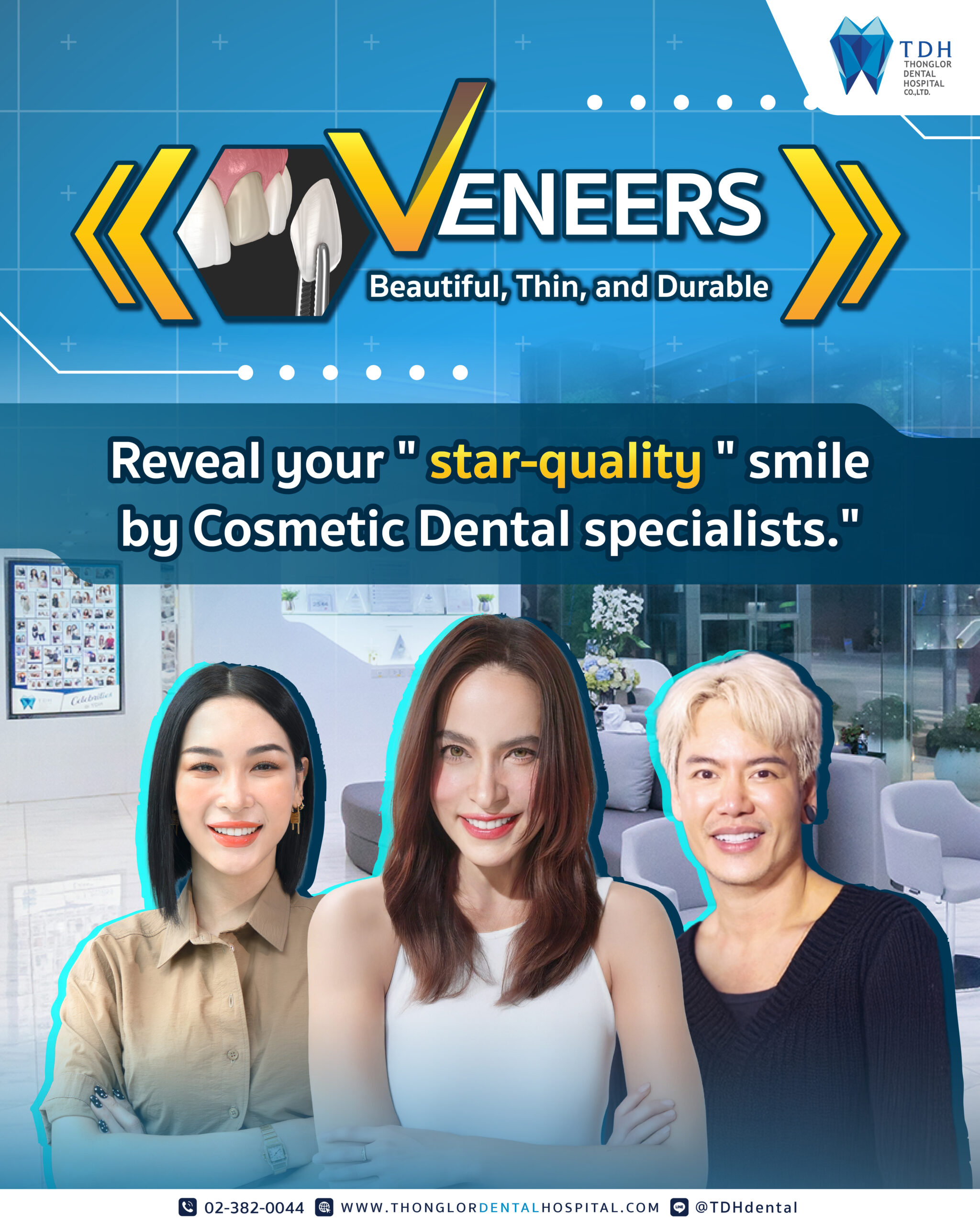 Veneer at 𝐓𝐃𝐇 𝐃𝐞𝐧𝐭𝐚𝐥 Using "ultra-thin" ceramic materials "Stronger than" natural teeth by 2 times With a technique that uses "less grinding" "Designed to fit the face" for each individual Careered by a team of experienced dentists Behind the smiles of celebrities, famous people