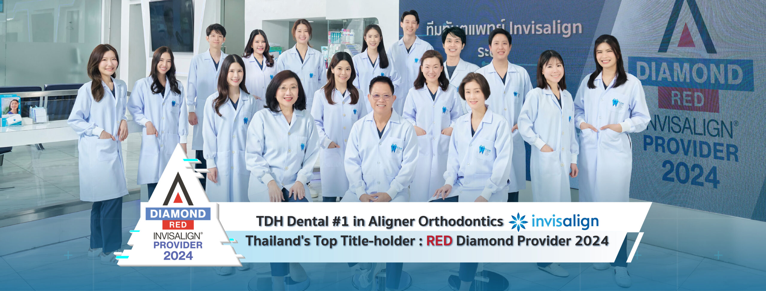 TDH Dental has been awarded the #1 Invisalign Red Diamond Provider title for clear aligner orthodontics in Thailand, with over 1,000 clear aligner cases per year and more than 6,700 cases of experience, covering cases from general to highly complex. Confidence in the results is assured with our cutting-edge technology and international standards.