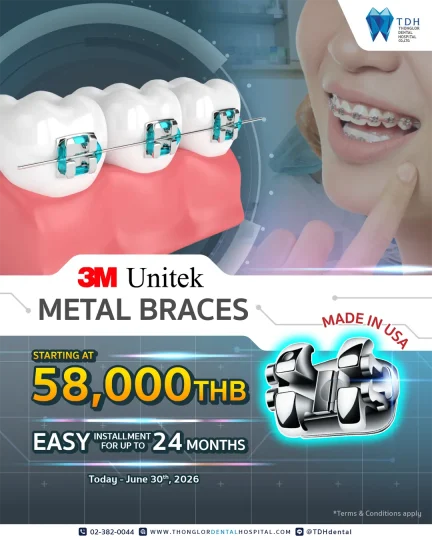 • Beautiful smile without waiting: Choose a clear braces discount, up to 20,000 baht discount (depending on the package)