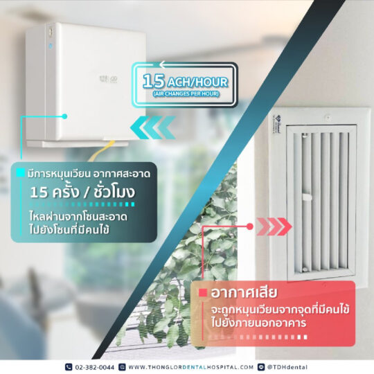 Treatment rooms are kept at a lower air pressure than the surrounding area, preventing air from escaping into waiting areas or corridors, ensuring that germs are not spread to others.