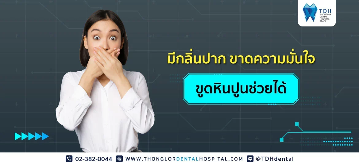 คุณเคยสูญเสียความมั่นใจเวลาคุณยิ้มไหม เจอใครก็ไม่กล้าสบตา ยิ้มทักทายเต็มปาก เพราะติดที่ฟันมีสีเหลือง มีกลิ่นปาก สาเหตุเกิดจากคราบหินปูนที่อาจสร้างปัญหาตามมาได้ เช่น เหงือกบวม เหงือกอักเสบ รากฟันอักเสบ หากปล่อยไว้นานอาจรุนแรงถึงขั้นลุกลามเป็นโรคปริทันต์ในช่องปาก เพราะสาเหตุที่เป็นต้นตอหลักมาจากการเกิดคราบหินปูนที่ฝังแน่นบริเวณซี่ฟัน และจากที่มีกลิ่นปากอันไม่พึ่งประสงค์ ลมหายใจไม่สดชื่นที่ทำให้ใครหลายคนสูญเสียความมั่นใจในการพูดคุยต่อหน้าคนอื่น ปัญหากลิ่นปากนี้มีวิธีจัดการง่าย ๆ ส่วนจะจัดการได้อย่างไรนั้น บทความนี้มีคำตอบให้คุณ !!