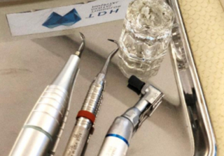 - ทันตแพทย์ใช้เครื่องมือขจัดหินปูนแบบที่มีแรงสั่นสะเทือนความถี่สูง ทำให้หินปูนหลุดออก