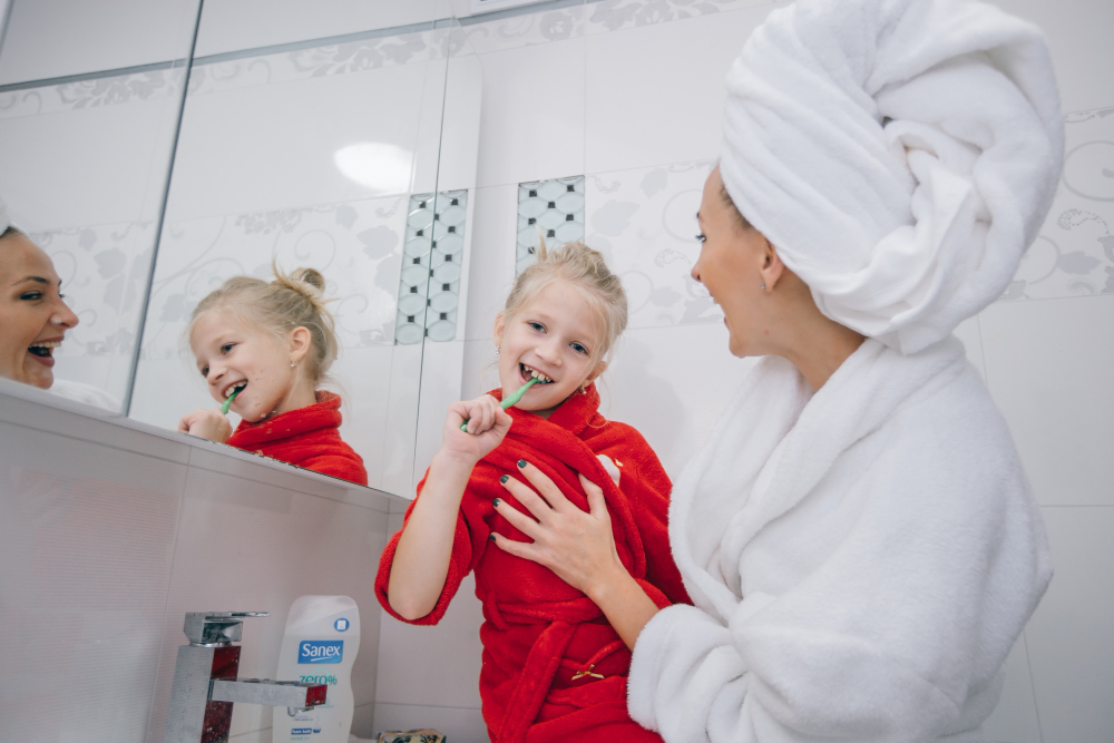 เด็กมักเรียนรู้จากการเลียนแบบ หากพ่อแม่แปรงฟันไปพร้อมกัน จะช่วยให้เด็กรู้สึกว่าเป็นกิจกรรมสนุก ไม่ใช่การถูกบังคับ