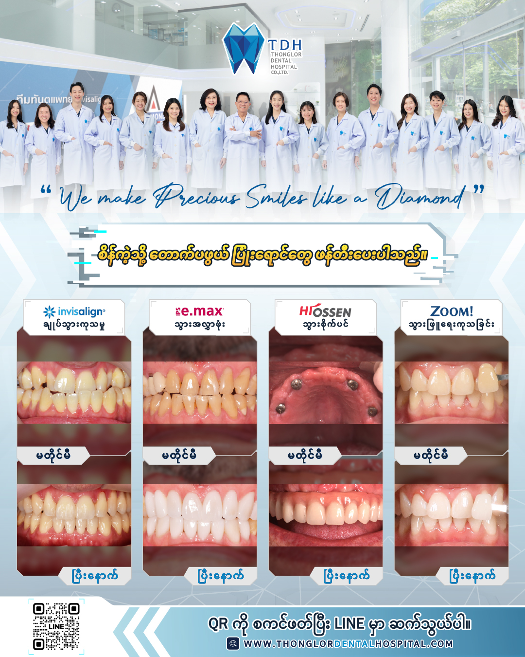 ကော်ဖီ၊ လက်ဖက်ရည် ဒါမှမဟုတ် မီးခိုးအစွန်းအထင်းတွေရှိနေရင် ၄၅ မိနစ်အတွင်းမှာ သွားတွေဖြူလာပြန်ရော။ TDH ၏ Zoom သွားဖြူစင်ခြင်းကို လက်မှတ်ရသွားဆရာဝန်မှ လုပ်ဆောင်ပြီး လုံးဝဘေးကင်းပြီး နာကျင်မှုမရှိပါ။