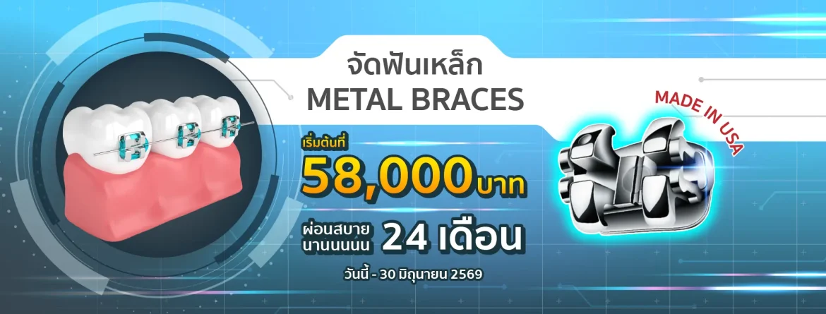 การจัดฟันแบบโลหะ เป็นวิธีจัดฟันยอดนิยมช่วยแก้ไขปัญหาฟันเก ฟันซ้อน ฟันห่าง และการสบฟันผิดปกติได้อย่างตรงจุด เหมาะสำหรับผู้ที่ต้องการผลลัพธ์ชัดเจนในราคาคุ้มค่า โดยทันตแพทย์จะวางแผนการรักษาเฉพาะบุคคลเพื่อให้ได้รอยยิ้มที่สวยงามและสุขภาพช่องปากที่ดีในระยะยาว