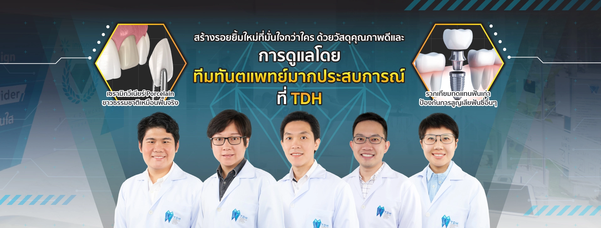 รากฟันเทียมที่ TDH Dental ช่วยให้คุณกลับมามีฟันที่ใช้งานได้จริง แข็งแรง และดูเป็นธรรมชาติ โดยทันตแพทย์ผู้เชี่ยวชาญจะออกแบบและวางแผนอย่างละเอียดด้วยเทคโนโลยี 3D เพื่อให้รากฟันเทียมเข้ากับโครงสร้างกระดูกและใบหน้าของแต่ละคน ฟื้นฟูการเคี้ยวและความมั่นใจให้กลับมาได้อีกครั้ง พร้อมดูแลคุณอย่างใส่ใจในทุกขั้นตอน เพื่อรอยยิ้มที่กลับมาสวยและใช้งานได้ยาวนาน.