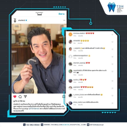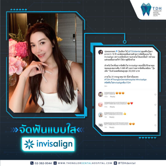 รีวิวจัดฟันใส Invisalign® จากดารา นักแสดง พิธีกร และเซเลบชั้นนำหลากหลายวงการที่วางใจเลือกจัดฟันแบบใส Invisalign® กับ TDH Dental และวิดีโอบอกเล่าความประทับใจของคนไข้ที่มาใช้บริการที่คลินิกทันตกรรมของเรา