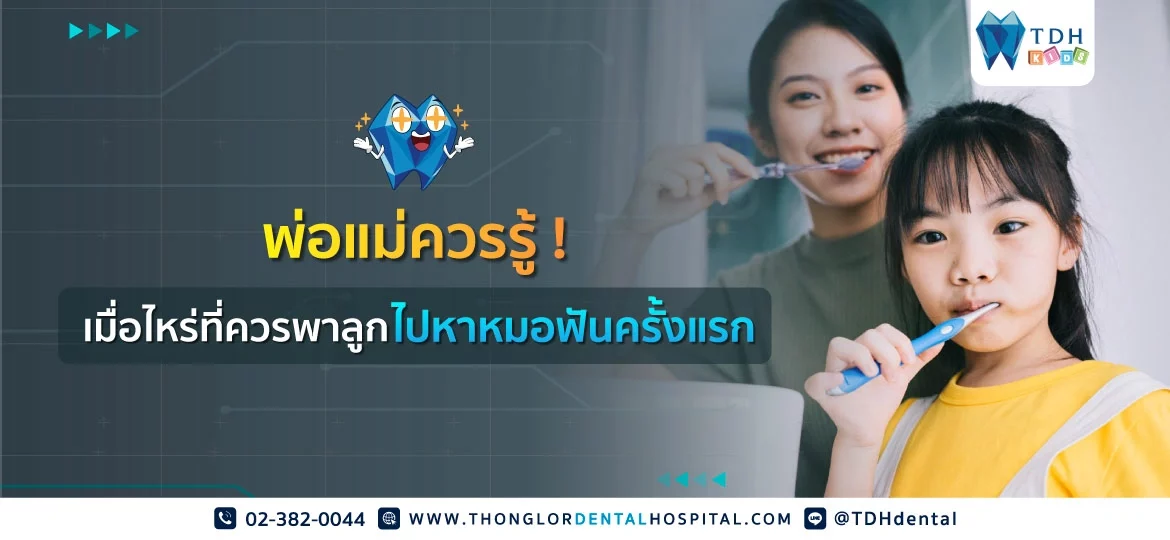 พ่อแม่หลายคนอาจข้องใจ ว่าเมื่อไหร่กันนะที่ควรพาลูกไปพบหมอฟันครั้งแรก ต้องรอให้ฟันขึ้นครบทั้งปากก่อนไหม? หรือรอให้ลูกปวดฟันก่อนค่อยพาไปรักษาหรือเปล่า? … แต่ความจริงแล้ว การไปพบทันตแพทย์นั้นควรทำตั้งแต่ฟันน้ำนมเริ่มขึ้น โดยไม่ต้องรอให้ฟันผุก่อน เพื่อเป็นการปูพื้นฐานให้กับสุขภาพช่องปากที่ดีของลูกในอนาคตนั่นเอง ดังนั้น TDH Dental จะมาแนะนำคุณพ่อคุณแม่ว่าควรพาลูกไปพบหมอฟันครั้งแรกตอนไหน และการไปคลินิกเพื่อตรวจฟันหรือทำฟันเด็กต้องเตรียมตัวยังไงบ้าง